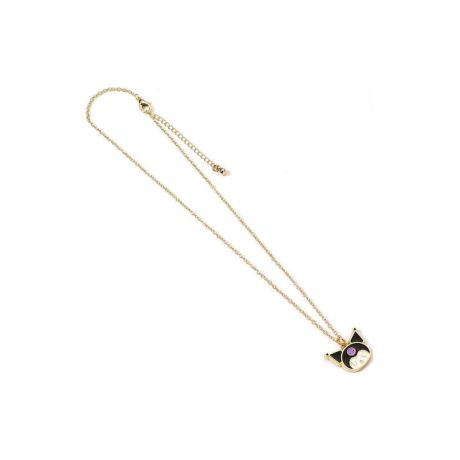 This fun necklace features Kuromi, one of Hello Kitty's mischievous friends, crafted in gold-plated metal with pearl enamel details. It hangs from a 40 cm plated chain with a 5 cm extender. Composition: Zinc alloy: 93% zinc + 3% copper + 4% aluminium.