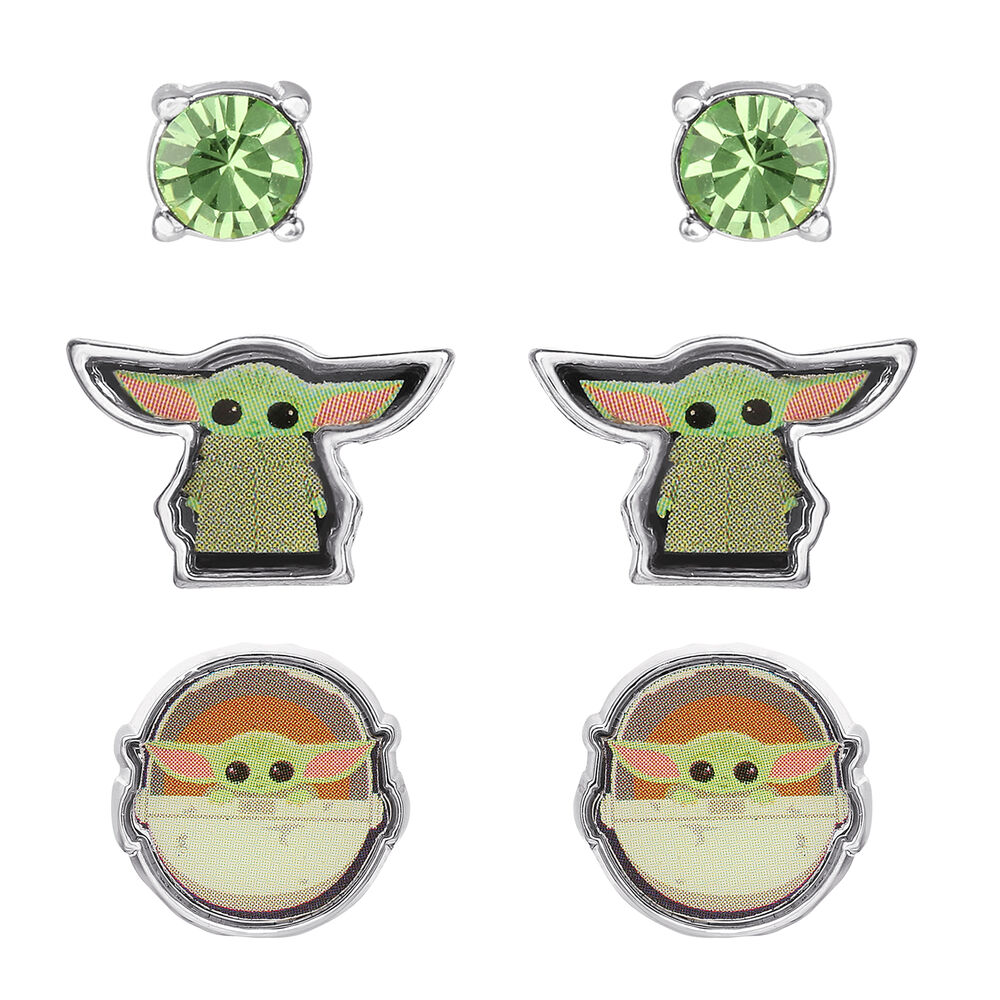 Yoda the Chil. Grogu. The set includes 3 sets of earrings, a set of stones and two cool earrings with Yoda design.