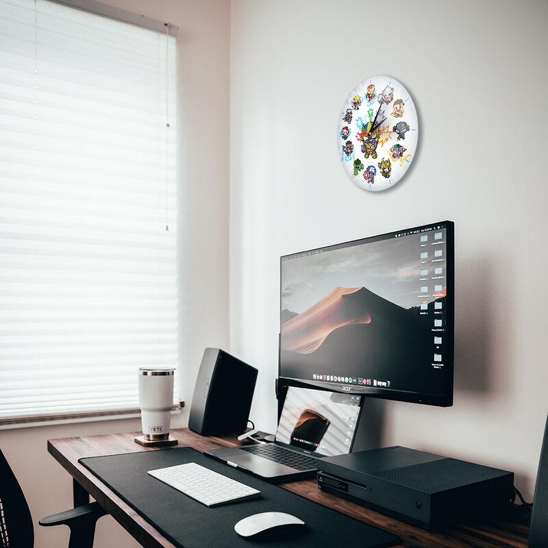 Glossy, reflective coating on the watch face. Elegant lacquered metal hands. Silent, floating clock mechanism. Diameter 30.5cm. Power supply with one AA battery (not included). Bracket for convenient wall hanging.