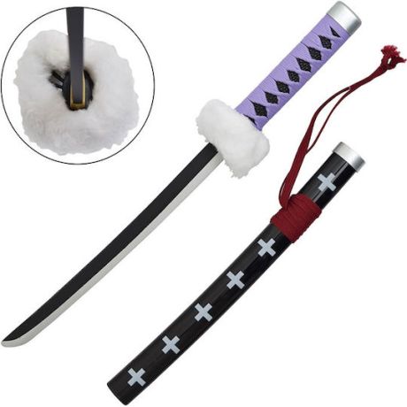 Μικρή katana από μπαμπού εμπνευσμένη από τον Trafalgar D. Water Law του One Piece, σε μωβ απόχρωση. Ιδανική για συλλέκτες, cosplay ή ως διακοσμητικό αντικείμενο, με ασφαλή μη αιχμηρή λεπίδα.