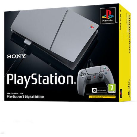Γιόρτασε τα 30 χρόνια PlayStation με αυτή τη συλλεκτική έκδοση που συνδυάζει το εμβληματικό design του αυθεντικού PlayStation του 1994 με την τεχνολογία της τελευταίας γενιάς. Η κονσόλα PS5 Digital Slim (Digital Edition) επανασχεδιάστηκε με γκρι απόχρωση, vintage PS logo και συνοδεύεται από ένα περιορισμένο DualSense Controller, ειδικό κάλυμμα für disc drive (χωρίς όμως να περιλαμβάνεται ο ίδιος ο δίσκος), κάθετο stand και άλλα συλλεκτικά αξεσουάρ για μια ολοκληρωμένη εμπειρία.