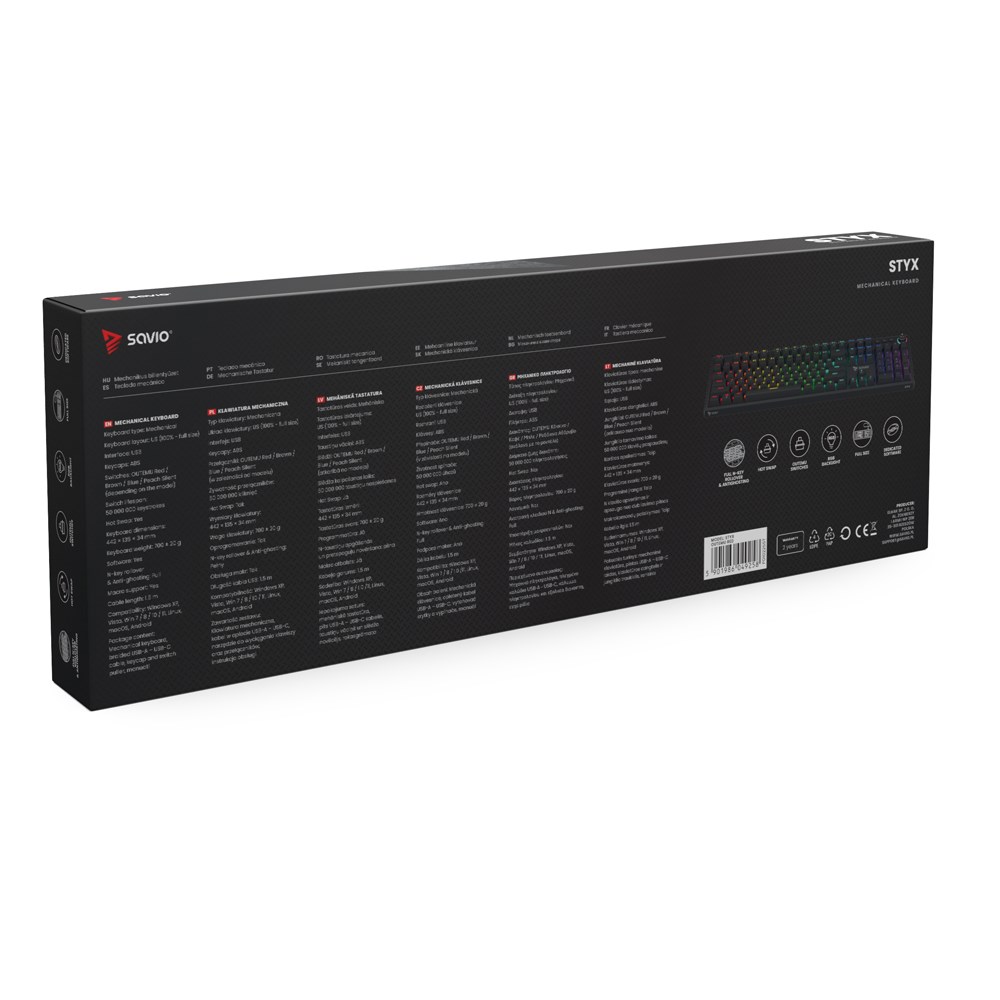 SAVIO STYX Mechanical Keyboard Outemu Red, Hot Swap, RGB