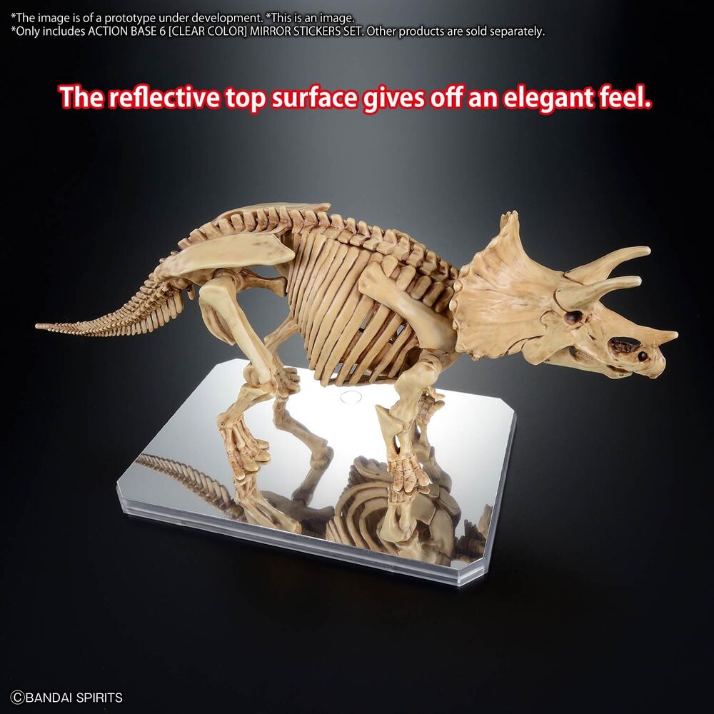 Type: Display stand. Colour: Clear. Contents: 1 set of mirror-effect stickers, 2 base parts, 1 set of supports, 2 C-type arms, 1 set of connectors, and an instruction manual. Description: A version of the Action Base 6 that includes a set of mirror-finish stickers to give the base a premium touch.