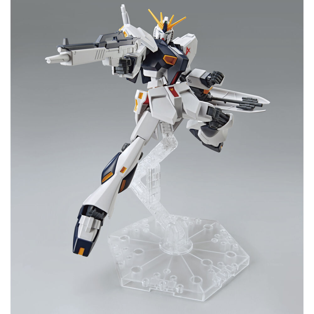 Entry Grade. Compatible with action base 2, 5, 6 and 7. Water decals. The RX 93 ν Gundam, was a mobil suit designed and piloted by Amuro Ray. One of the most advanced MS during the Second Neo Zeon War, it marked the climax of the UC with its innovative technology and iconic legacy in the saga.