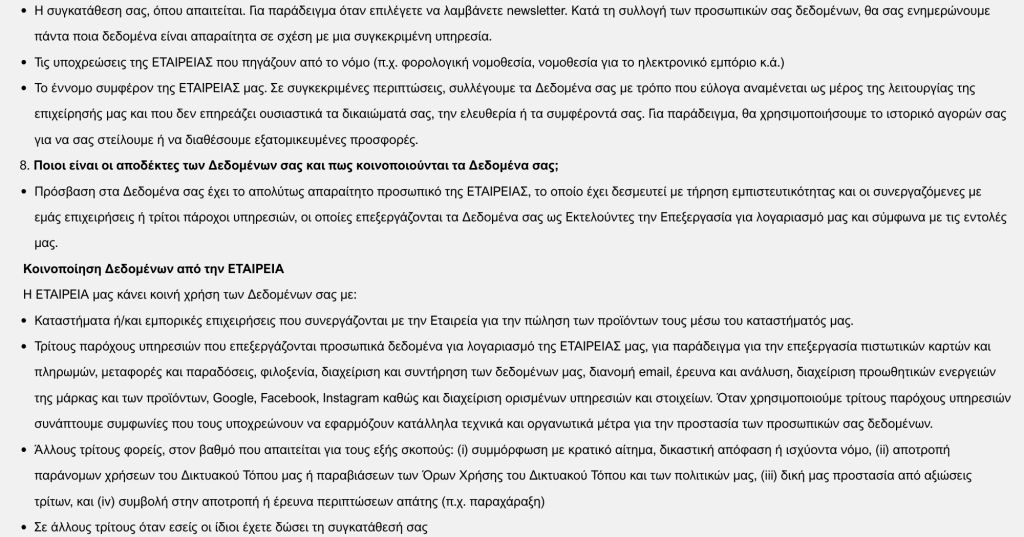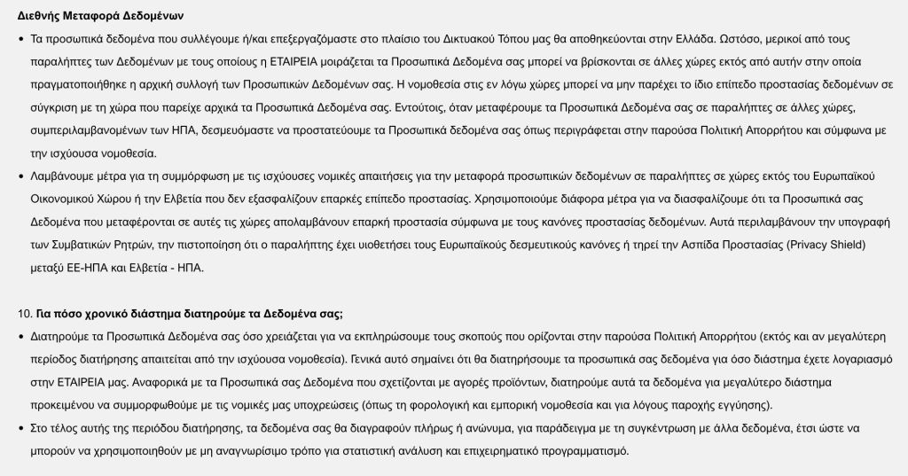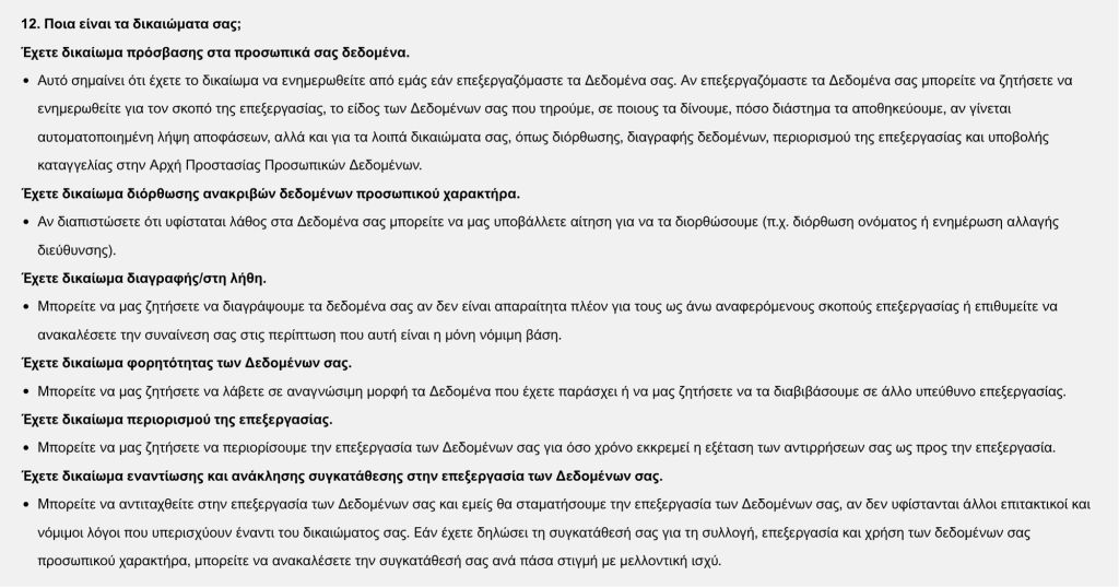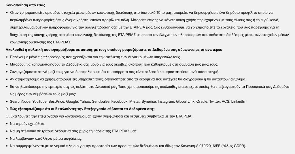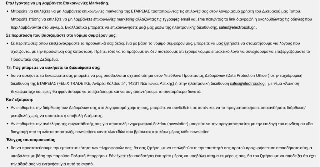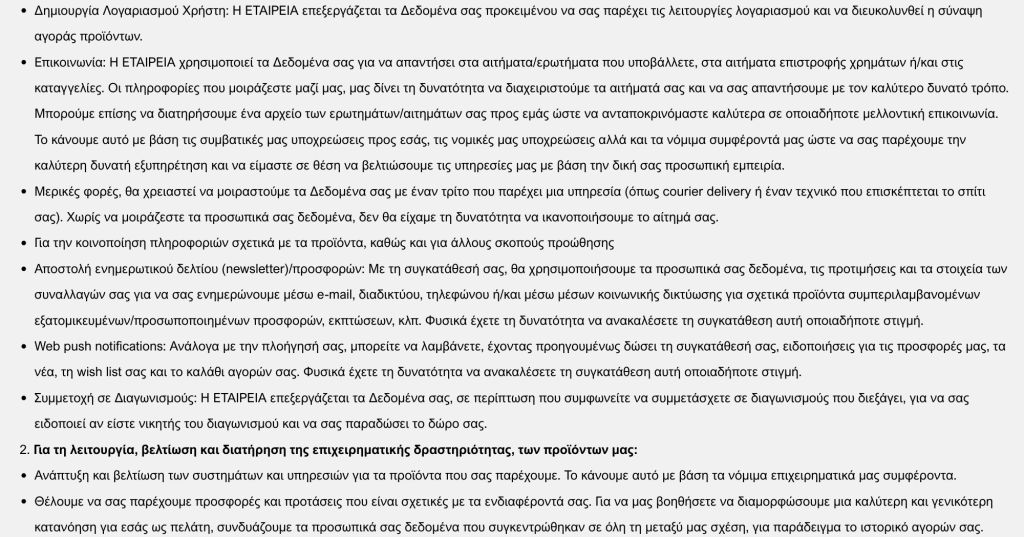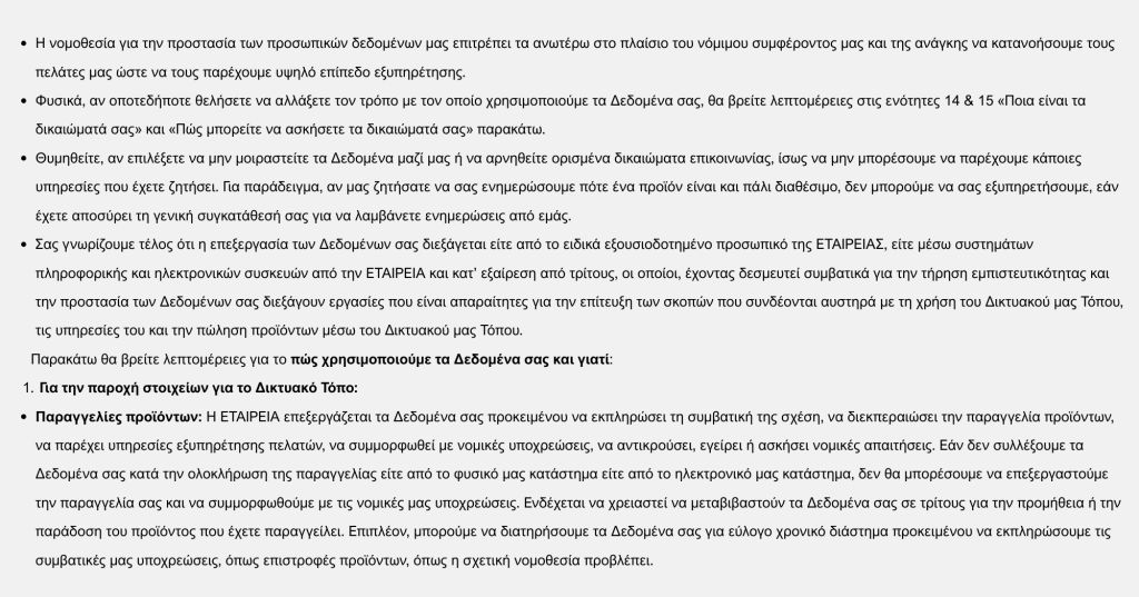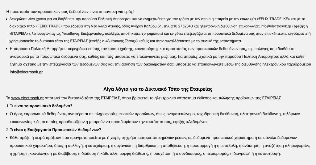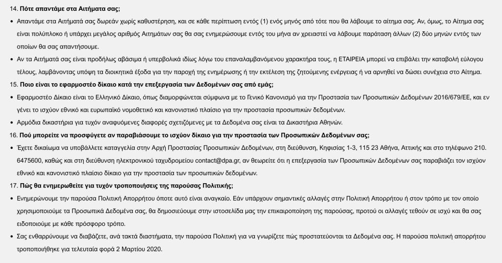 Ελπίζουμε ότι η παρούσα Πολιτική Απορρήτου βοήθησε να κατανοήσετε τον τρόπο με τον οποίο χειριζόμαστε τα Προσωπικά σας Δεδομένα και τα δικαιώματά σας να ελέγχετε τον χειρισμό από την ΕΤΑΙΡΕΙΑ μας. Αν έχετε οποιεσδήποτε ερωτήσεις που δεν έχουν καλυφθεί, ή σχόλια και προβληματισμούς που μπορεί να έχετε σχετικά με την Πολιτική Απορρήτου μας παρακαλούμε επικοινωνήστε με τον υπεύθυνο προστασίας δεδομένων μας ο οποίος θα χαρεί να σας βοηθήσει, στην ηλεκτρονική διεύθυνση [email protected] ή στείλτε επιστολή στη διεύθυνση προς τον Υπεύθυνο Προστασίας Δεδομένων στη διεύθυνση Ανδρέα Κάλβου 51, 14231 Νέα Αττική, Αττικής, Ελλάδα.