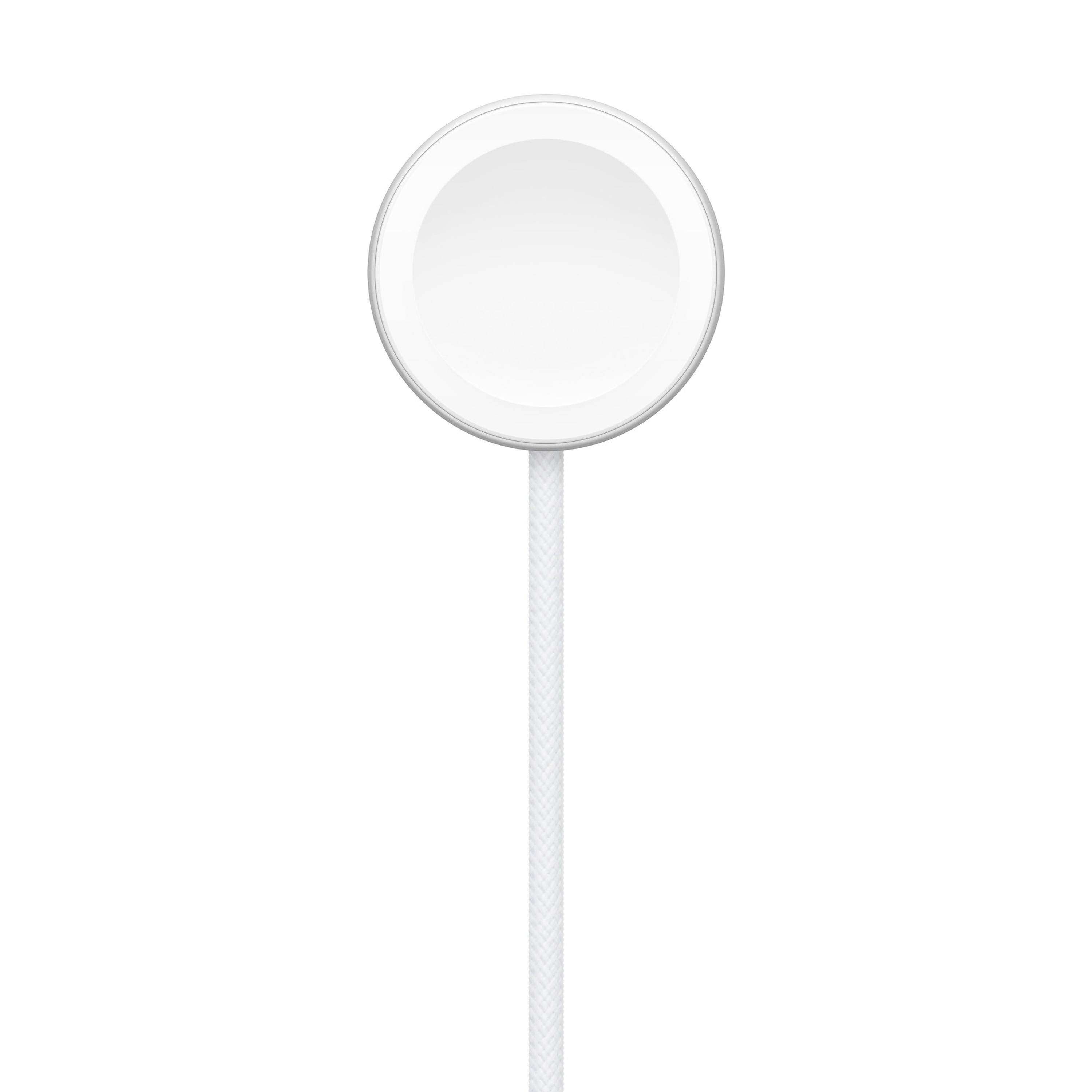 Apple Watch Magnetic Fast Charger to USB-C Cable 1mΑνθεκτικό, υφασμάτινο καλώδιο με δυνατότητες γρήγορης φόρτισης για επιλεγμένα μοντέλα Apple Watch. Απλώς τοποθέτησε τον συνδετήρα κοντά στο πίσω μέρος του ρολογιού, όπου οι μαγνήτες το προσαρμόζουν αυτόματα στη θέση του.